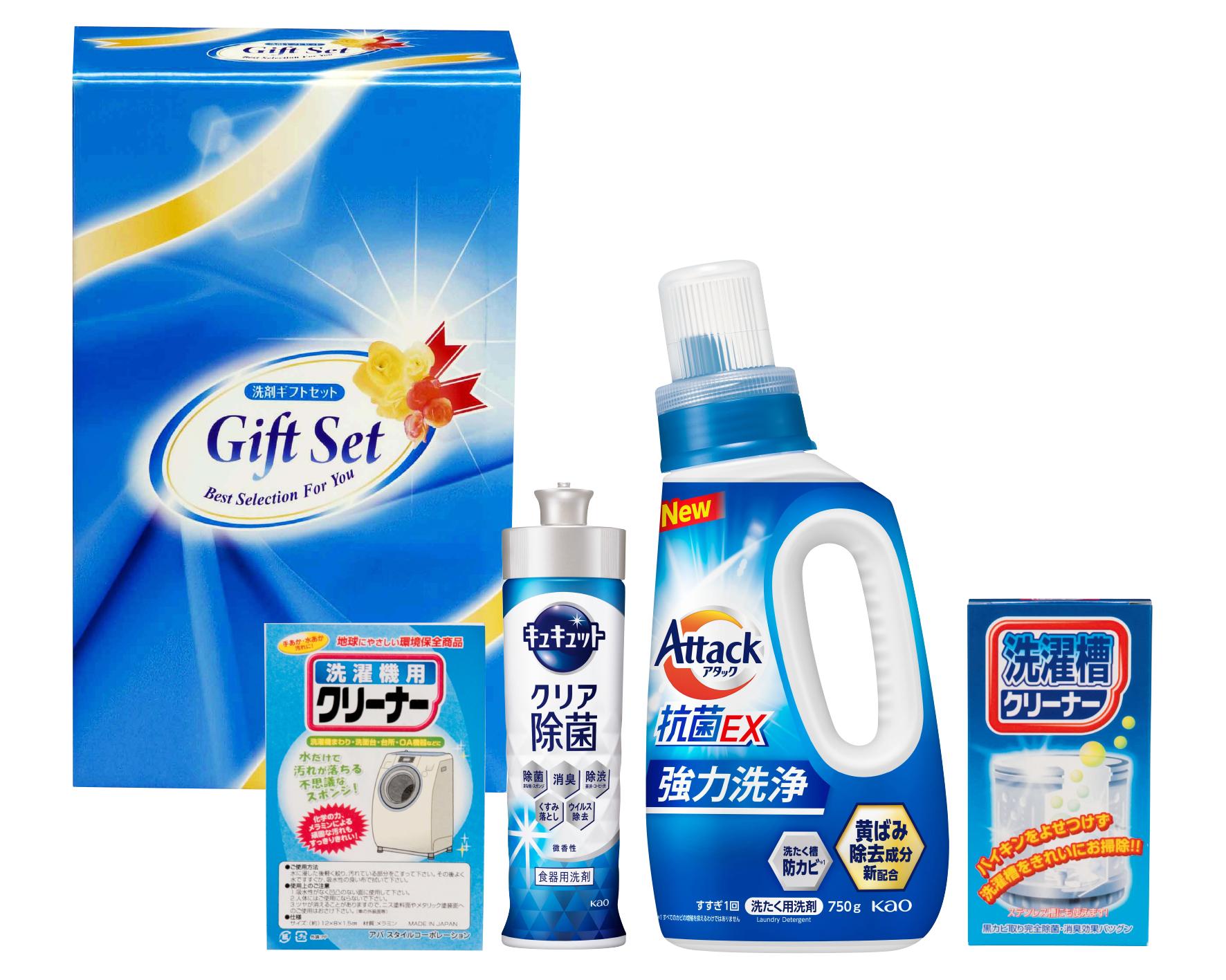 | 商品内容 | ●花王アタック抗菌EX750g×1 ●花王キュキュットクリア除菌220ml×1 ●洗濯槽クリーナー5錠×1 ●洗濯機用クリーナーM×1 |