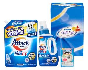 | 商品内容 | ●花王アタック抗菌EX750g×1 ●花王アタック抗菌EX 詰替特大900g×1 ●洗濯機用クリーナーM×1 |