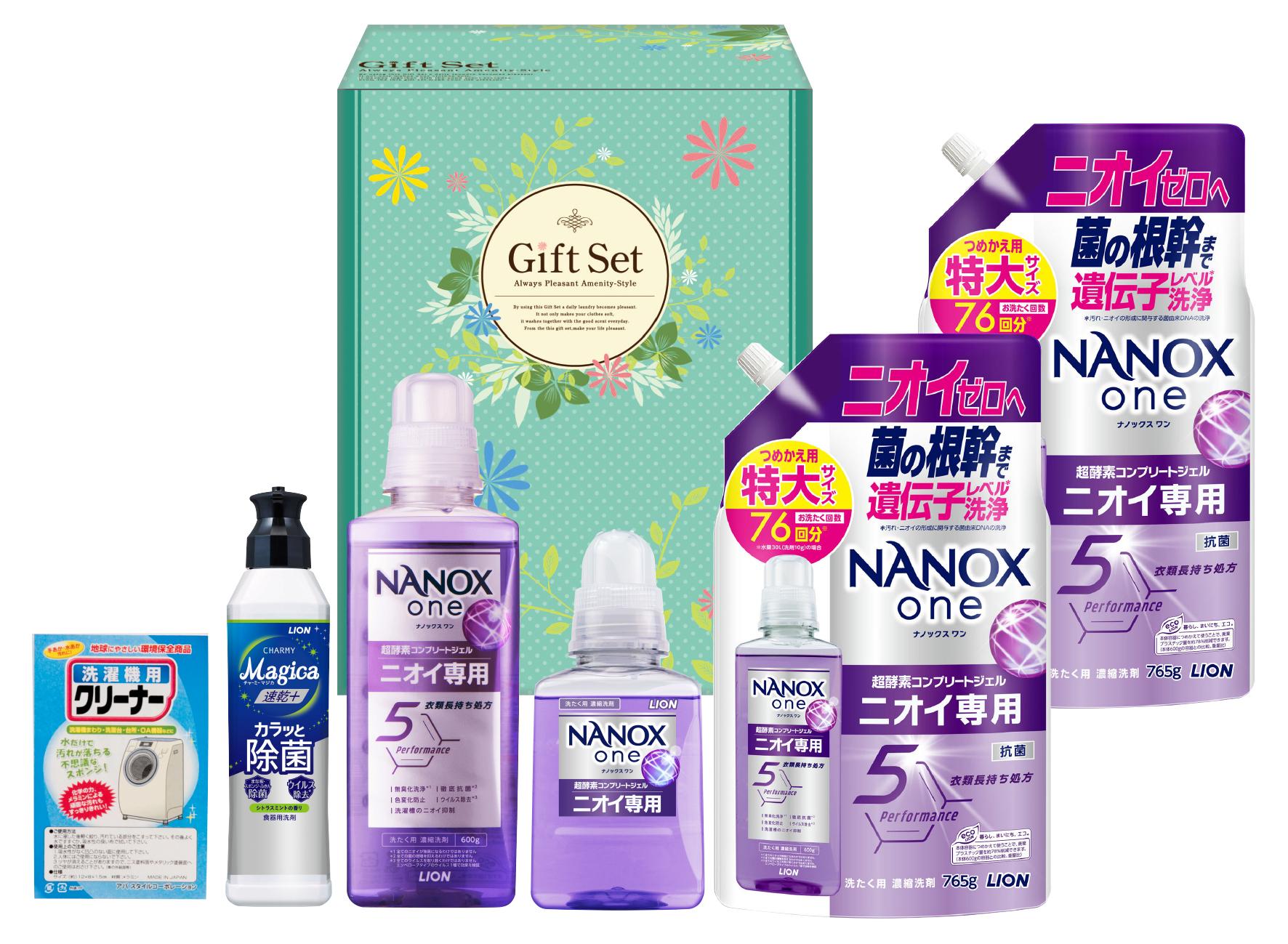 | 商品内容 | ●ライオンナノックスone 本体380g×1 ●ライオンナノックスone 本体大600g×1 ●ライオンナノックスone 詰替特大765g×2 ●ライオンチャーミーマジカ速乾プラス220ml×1 ●洗濯機用クリーナーM×1 |